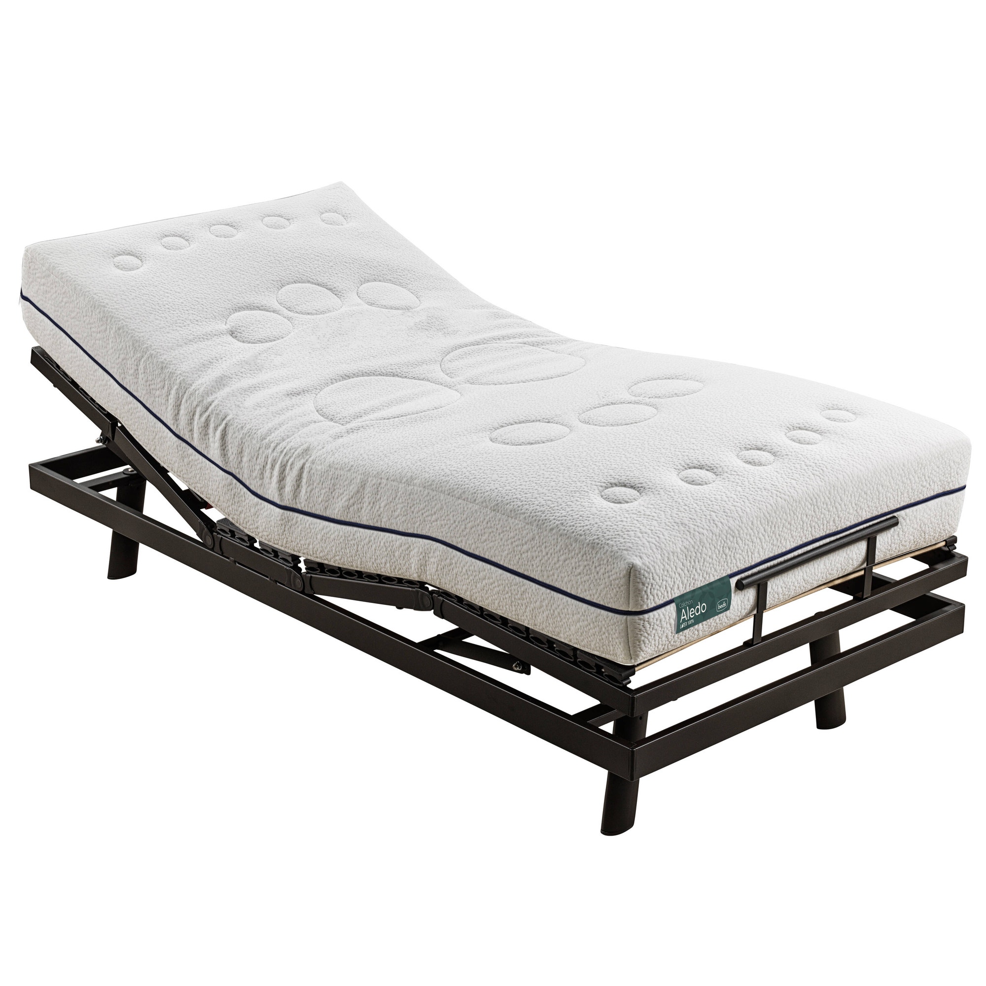 O material de látex do colchão Aledo é obtido a partir da borracha da árvore Hevea (matéria-prima natural) que, quando submetida a um processo de formação de espuma e vulcanização, resulta num suporte de firmeza média (relevo exterior multiperfurado com sete zonas de descanso) que se adapta perfeitamente à anatomia das pessoas e à articulação dos estrados.